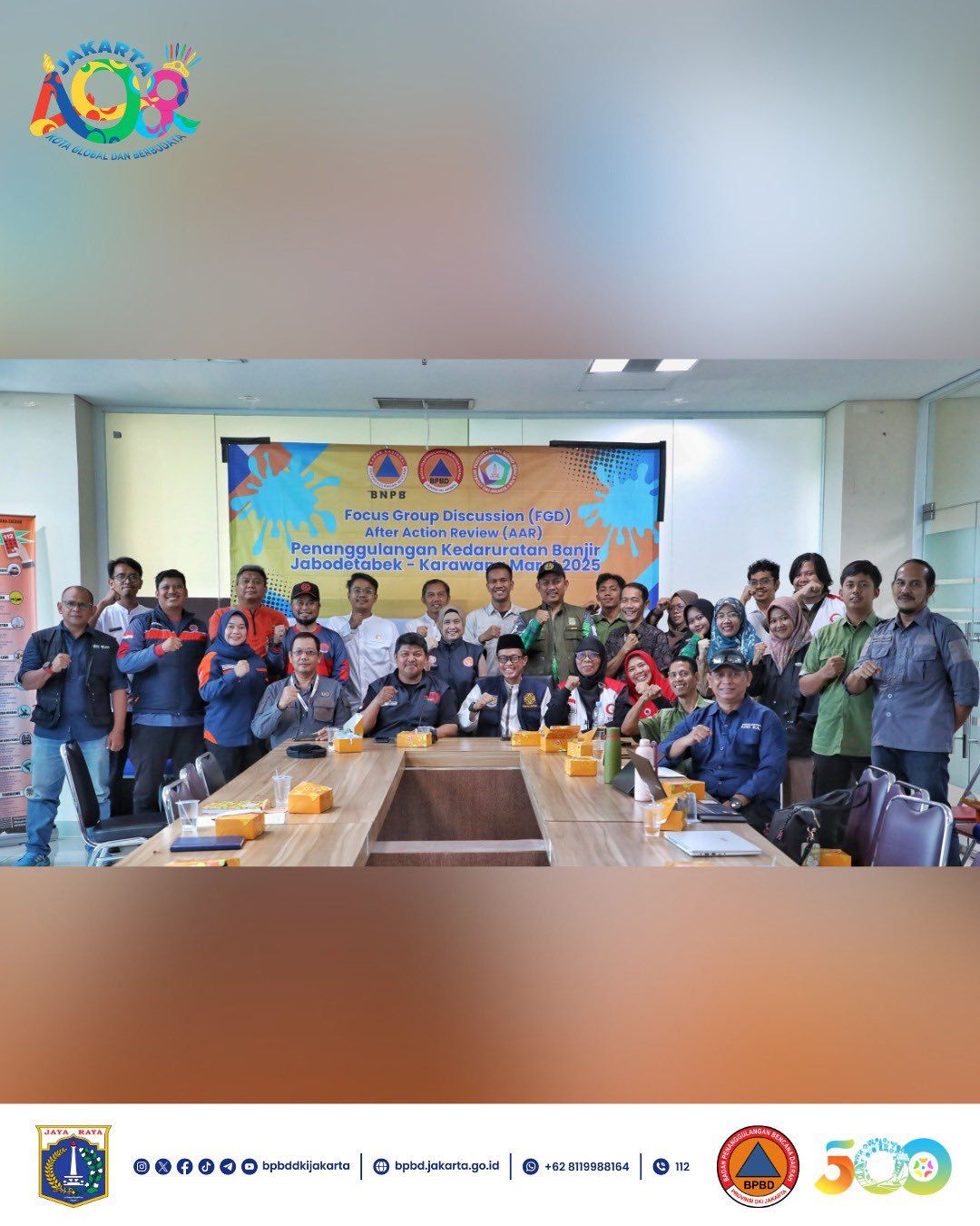 Jumat (20/06) Forum Pengurangan Risiko Bencana (FPRB) Provinsi Jakarta bersama Badan Penanggulangan Bencana Daerah (BPBD) DKI Jakarta bersama mengadakan Focus Group Discussion (FGD) After Action Review (AAR) terkait penanggulangan kedaruratan banjir Jabodetabek-Karawang.
